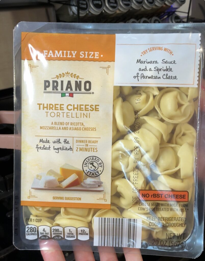 - 20 oz Package Fresh Cheese Tortellinni frozen will work too, but you will need to cook it a bit longer