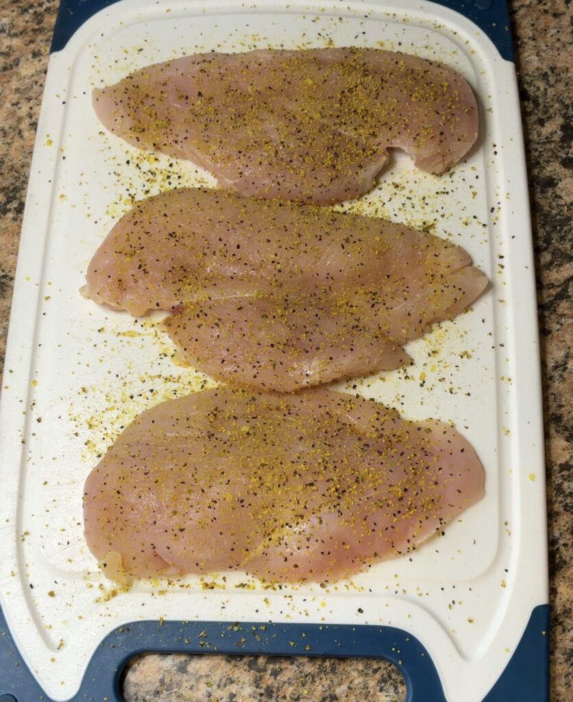 - Lemon pepper seasoning – Gives the chicken bright, simple flavor that pairs perfectly with Caesar dressing.