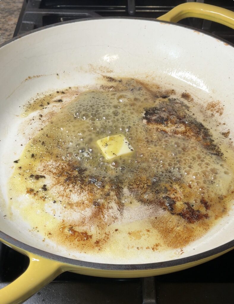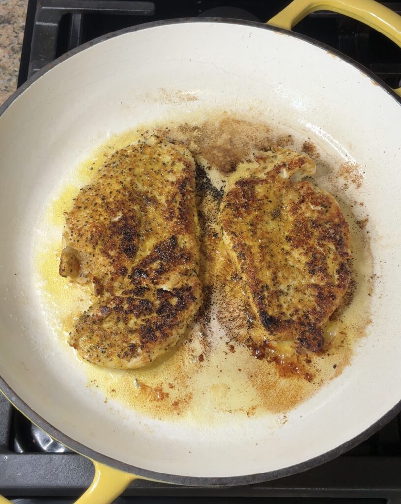 - Butter + avocado oil – gives the chicken a beautiful golden sear