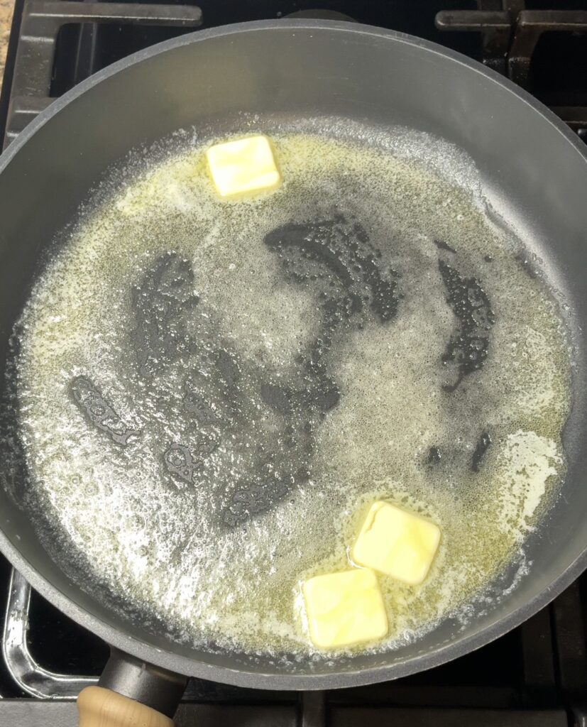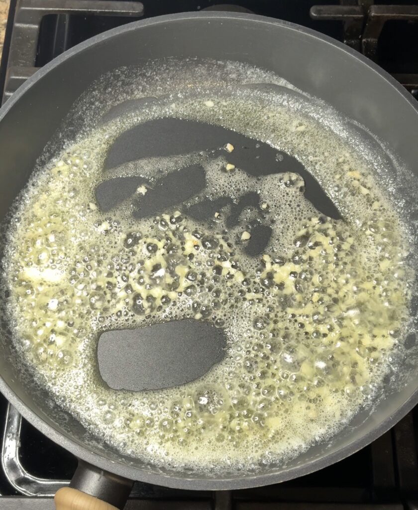 Start by melting the butter in a large, deep skillet over medium heat. Once melted, add the minced garlic and cook for about a minute, just until fragrant.