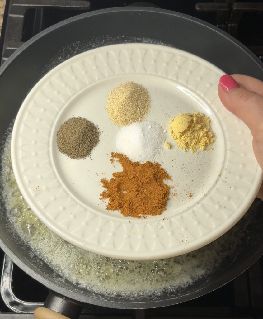 - Stir in the onion powder, dried mustard, curry powder, salt, and black pepper. Cook for 1–2 minutes to bloom the spices.