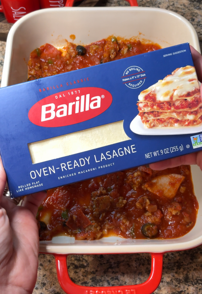 • Oven-ready lasagna noodles – no boiling required, they cook right in the sauce