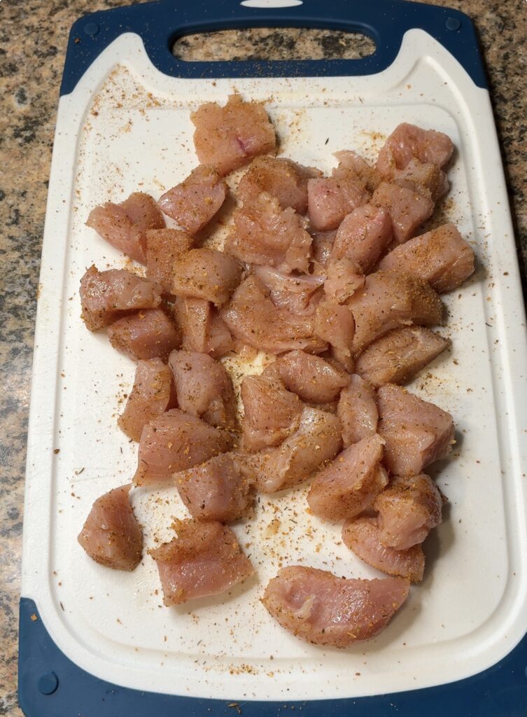 - .75-1 lb Boneless, Skinless Chicken Breasts or Thighs, cut into bite-sized pieces