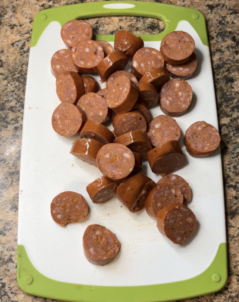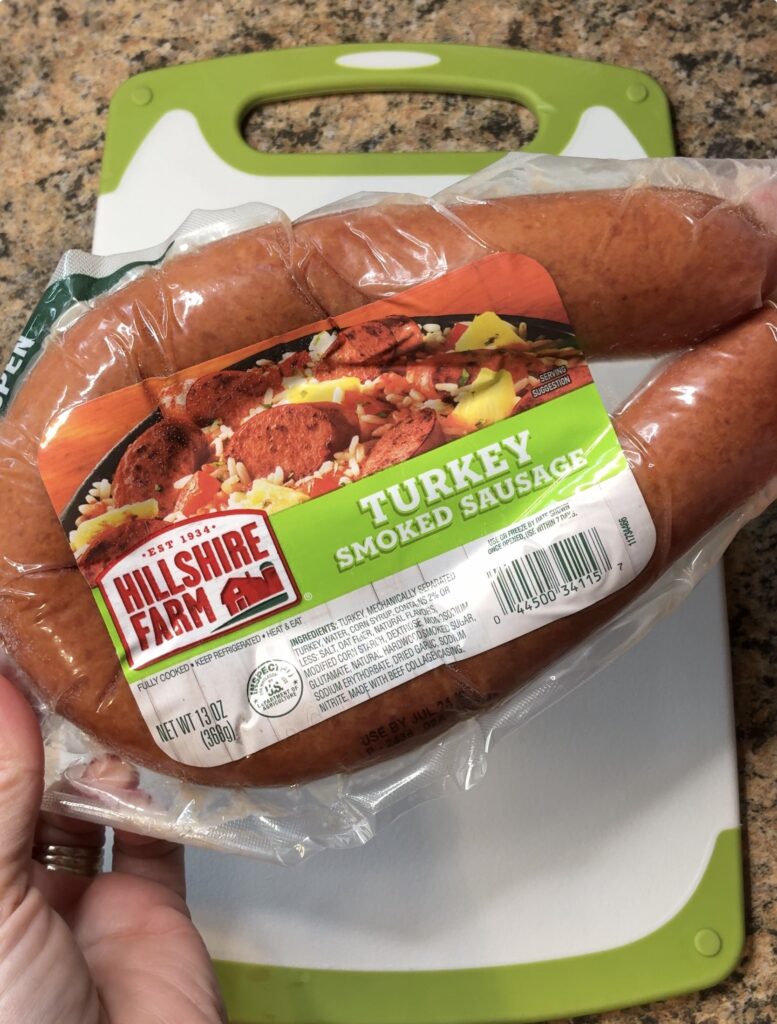 - 13 oz Smoked Turkey Sausage, cut into slices