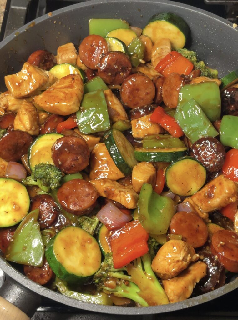Sweet & Savory Chicken and Smoked Sausage Teriyaki Stir Fry